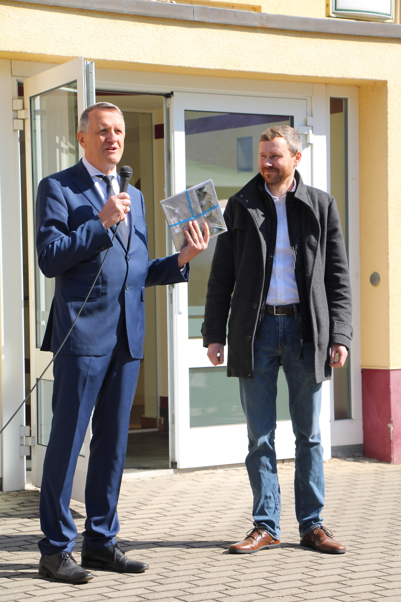 Bei bestem Sonnenschein wurde die Festveranstaltung um 10.00 Uhr mit zwei flotten Tänzen der MiniMäuse vom Zwochauer Karnevalsverein eröffnet. Das Publikum spendete regen Beifall. Im Anschluss nahm der Aufsichtsratsvorsitzende Herr Menzel alle Anwesenden mit, auf eine kleine Zeitreise durch die Geschichte der Wohnungsbaugenossenschaft und würdigte das Engagement der Mitglieder. Ein besonderes Dankeschön ging an die Mitarbeiterinnen und Mitarbeiter für die geleistete Arbeit. Der OBM Herr Dr. Wilde überbrachte Grußworte an die Bewohner und Mitglieder und gab einen kleinen Ausblick auf die anstehenden Entwicklungen in Delitzsch. Mit dem Großforschungsprojekt CTC wird sich der Delitzscher Südraum verändern und mit einem weiteren Zuzug von Wohnungssuchenden einhergehen.