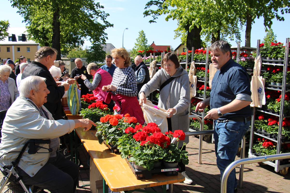 Die Verkündung des diesjährigen Motto des Tages durch den Vorstand Herrn Schulz: „WBG – Wir Begleiten Generationen“, gab pünktlich 10.30 Uhr das Startsignal für die Ausgabe der farbenprächtigen Geranien an unsere Mitglieder.