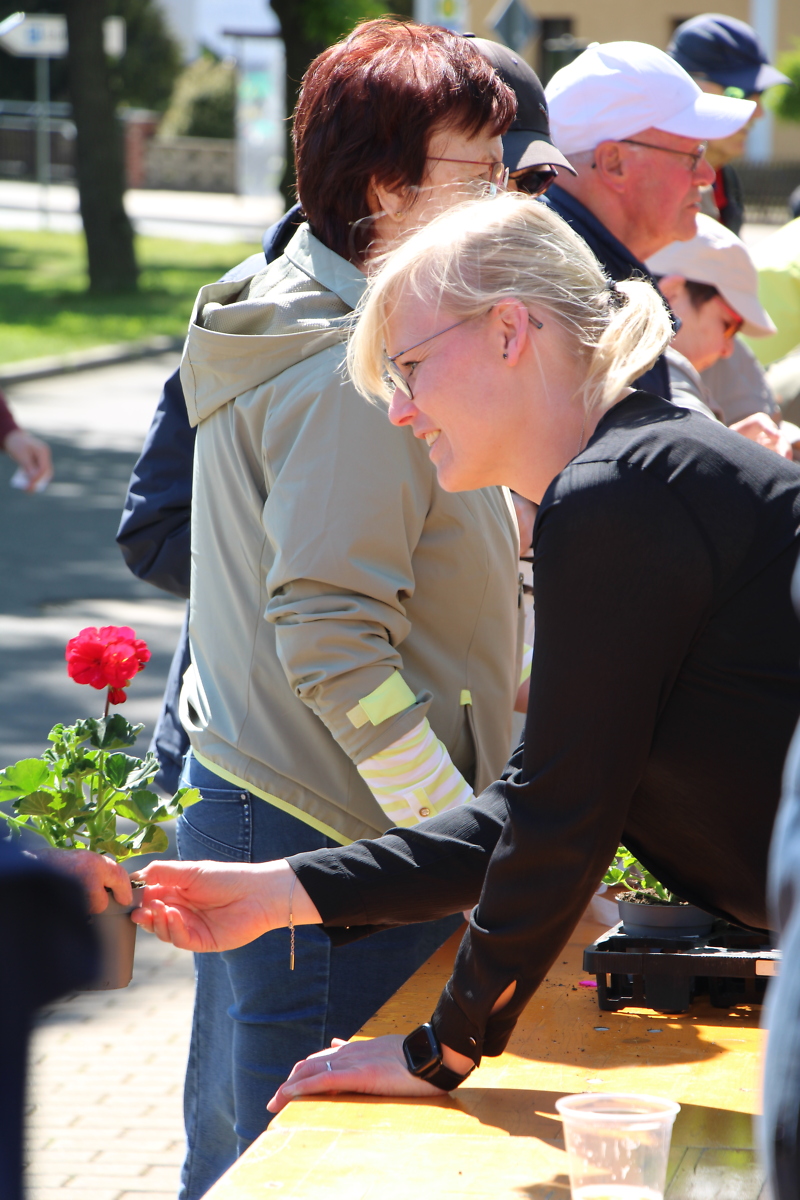Ab 6.30 Uhr waren die ersten Helfer vor Ort und stellten die Sitzgelegenheiten, Tische und Zelte auf. Die Getränke- und Verpflegungsstrecke wurde gerichtet und der Grill angefeuert. Während sich das Team Transport auf den Weg machte um die heißbegehrten Geranien zu laden wurde die Verteilstation aufgebaut. Es lief alles nach Plan.